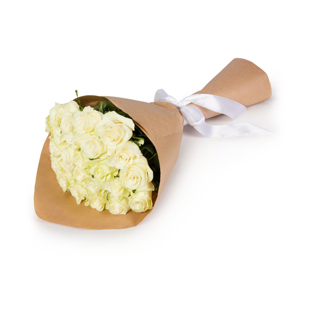Букет из 25 белых роз в крафте