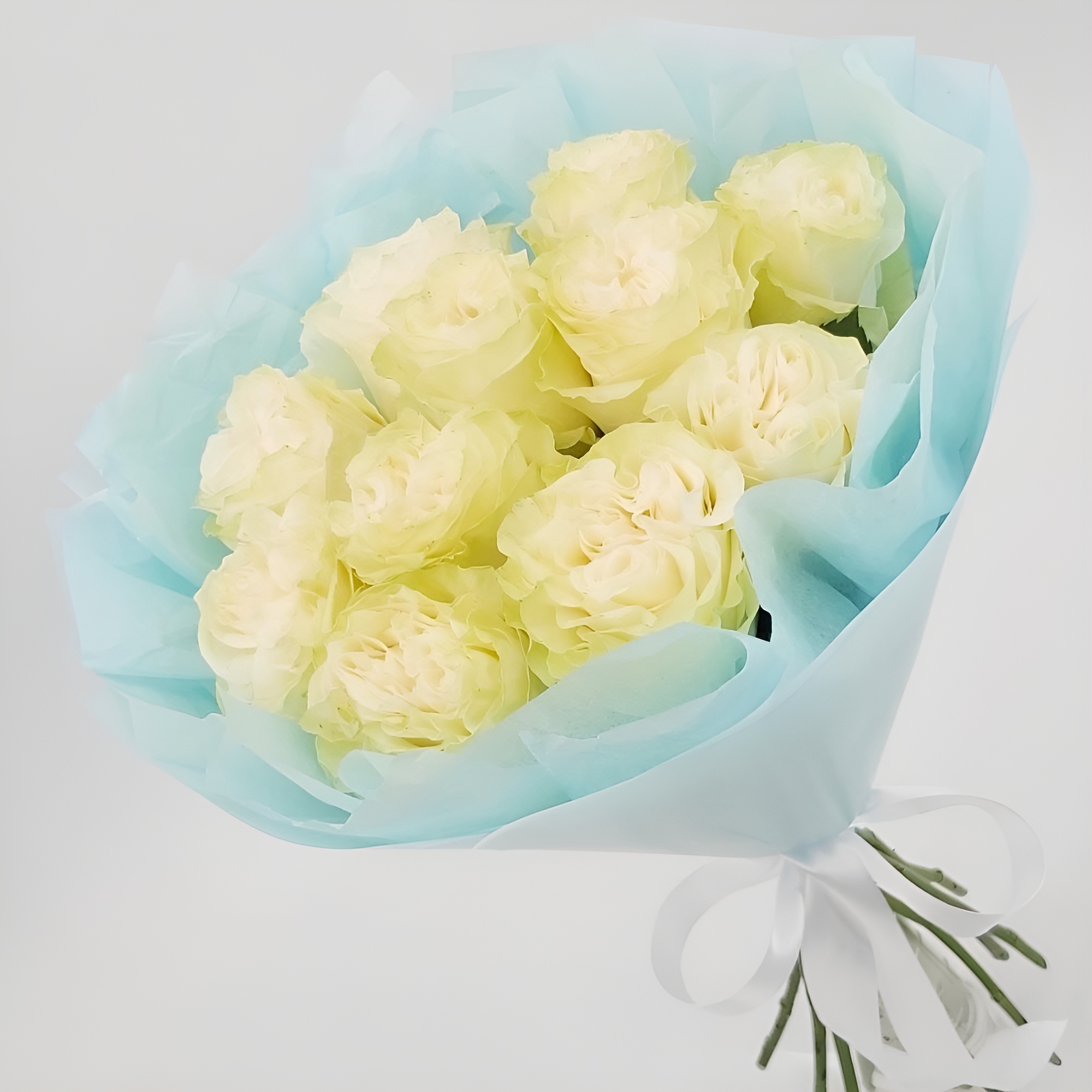 Букет «Кружевное облачко» – 11 белоснежных роз в нежной упаковке